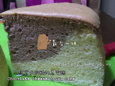 This morning instead I wanna steam chocolate cream cheese cake for my 3yo girl after discussing what does she want for breakfast. But ended I baked this Ogura chocolate cheese cake... this is my first attempt of baking it and feel very satisfied with the outcome.
